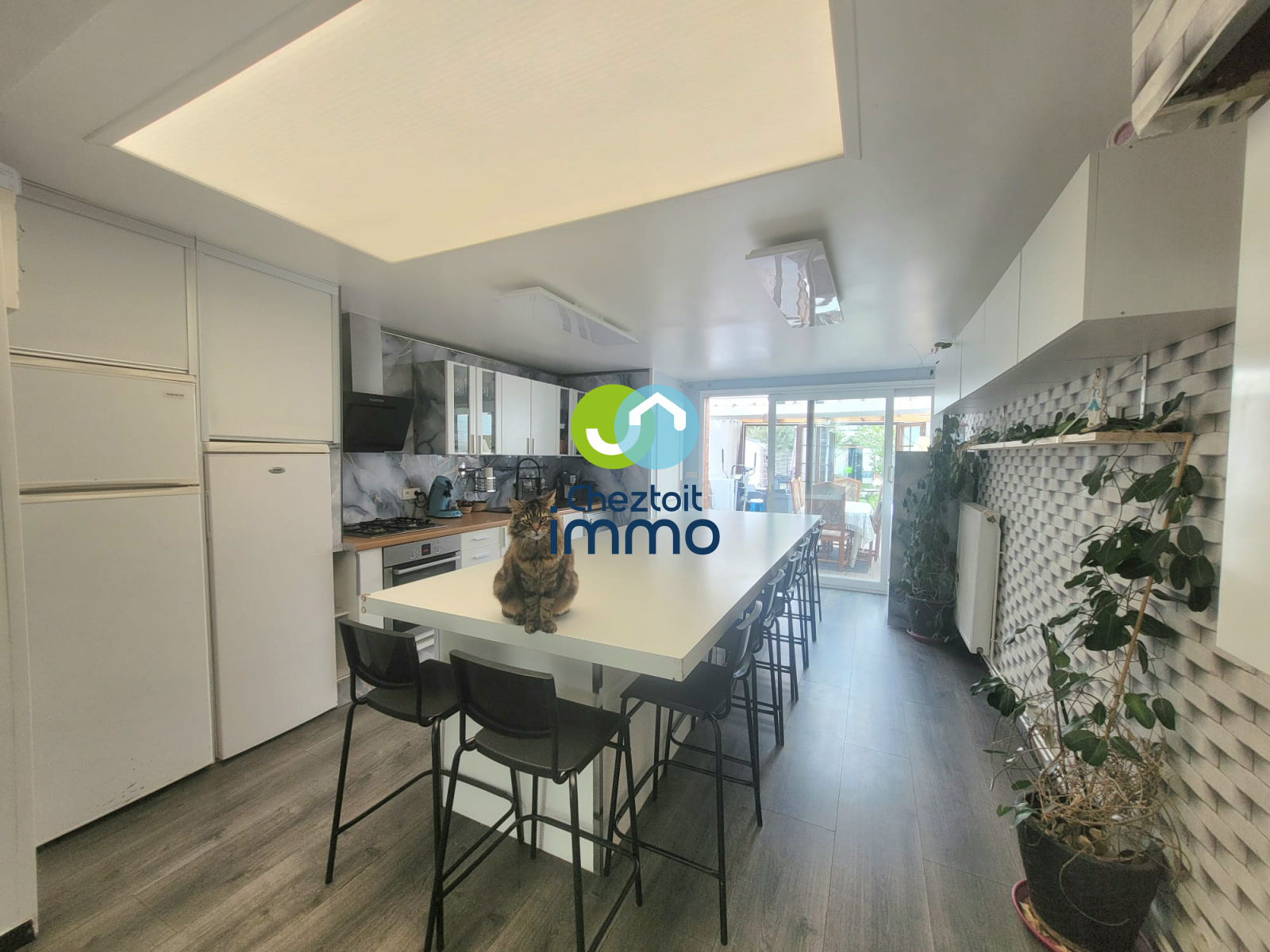 Offrant 110 m² habitables, elle propose un séjour de 32 m², une cuisine équipée moderne